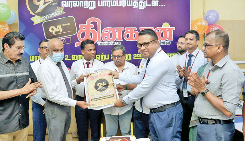 ලේක්හවුස් ආයතනයේ දමිළ මාධ්ය පුවත්පත වන තිනකරන් පුවත්පතේ 94 වැනි සංවත්සර උත්සවය ආයතනයේ සභාපති, කළමනාකරණ අධ්යක්ෂ ගාමිණි වරුෂමාන මහතාගේ ප්රධානත්වයෙන් කර්තෘ මණ්ඩල පරිශ්රයේදී ඊයේ (30) පැවැත්විණි. කර්තෘ මණ්ඩල අධ්යක්ෂ සිසිර යාපා, මූල්ය අධ්යක්ෂ චන්න කෙවිටියගල, සාමාන්යාධිකාරී සුමිත් කොතලාවල, සමාගම් ලේකම් සුදර්ශි හේවාවසම්, තිනකරන් කර්තෘ ටී. සෙන්තිල්වේලවර් ඇතුළු කර්තෘ මණ්ඩලය, නියෝජ්ය සාමාන්යාධිකාරීවරුන්, ප්රධාන පුවත්පත් කර්තෘවරුන් ඇතුළු පිරිසක් මේ අවස්ථාවට එක්ව සිටියහ.